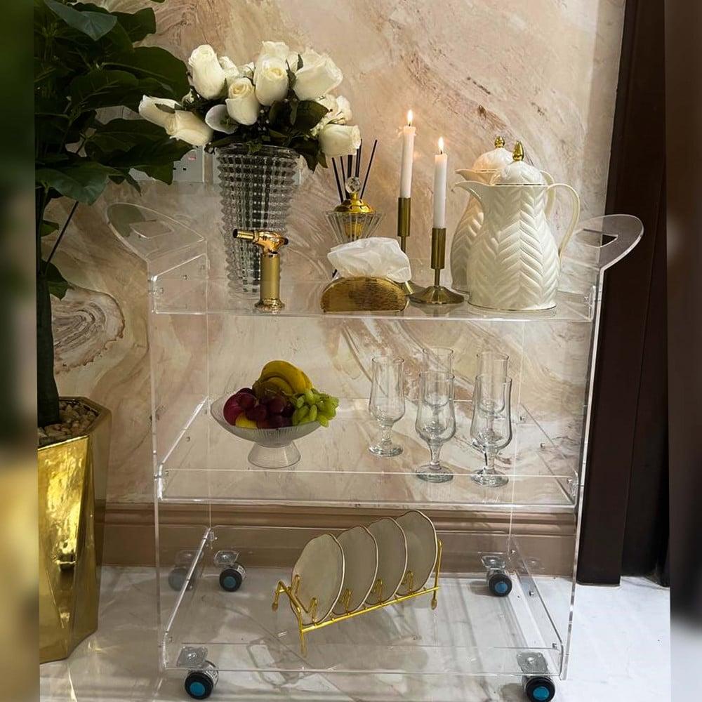 عربية الضيافة ترولي اكريليك تاتي بتصميم انيق و مصنوعه من أجود أنواع الأكريلك الشفاف ,